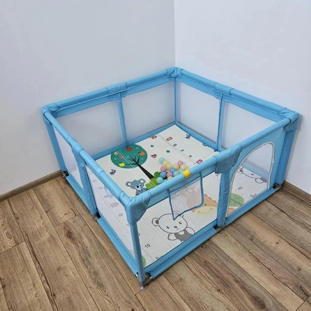 Дитячий розкладний манеж Avko 180х200см Blue + кульки та килимок