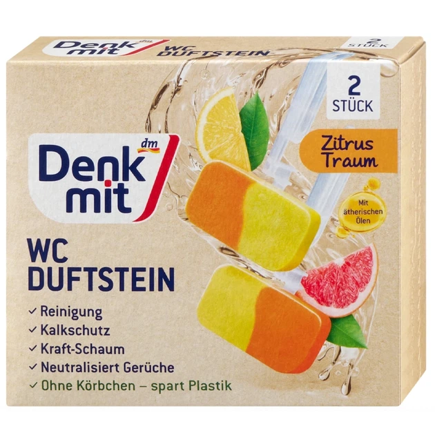 Підвісний туалетний блок Denkmit WC-Duftstein з ароматом цитруса і грейфрута, 2 шт – свіжість та приємний аромат для туалету