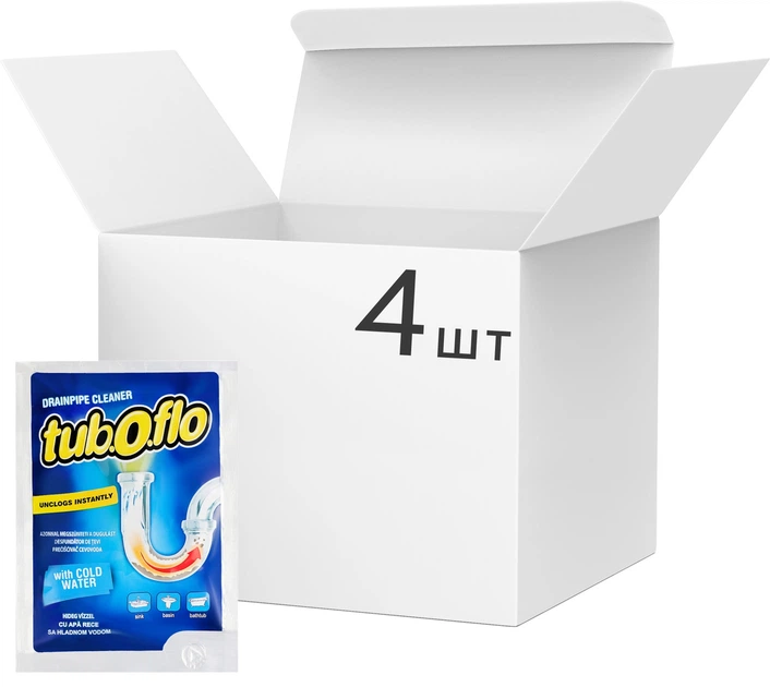 Упаковка засобу tub.O.flo для очищення труб холодною водою 55 г х 4 шт (4823058344287)