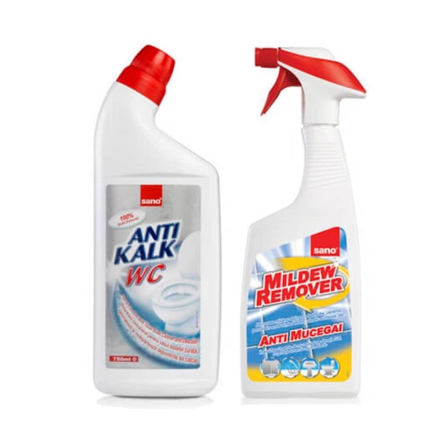 Засіб для чищення унітазів Sano Anti Kalk WC 750 мл & Засіб для видалення цвілі Sano Mildew Remover 750 мл (287621, 293561)