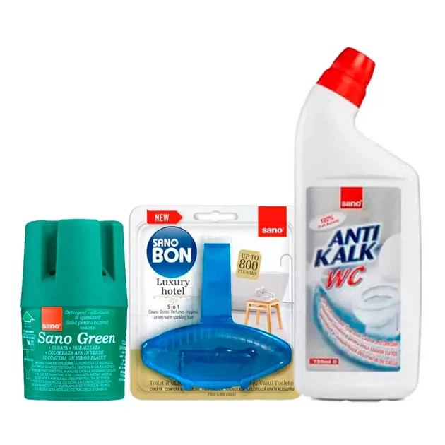Набір Sano Засіб для чищення унітазів Anti Kalk WC, Бачок для миття унітазу Green, Засіб для миття унітазу Hotel Luxury (287