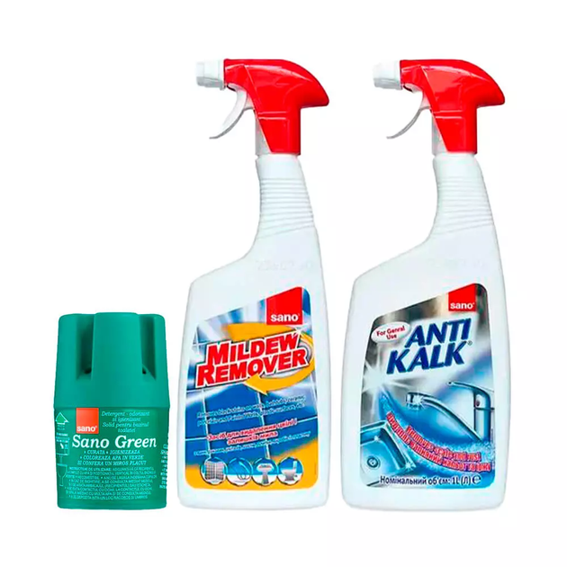 Набір Sano Засіб для видалення вапняного нальоту Anti Kalk, Засіб для видалення цвілі Mildew Remover, Засіб для прочищення к