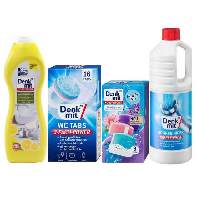 Набір DenkMit для ванної кімнати - крем універсальний + таблетки + блочки + для труб