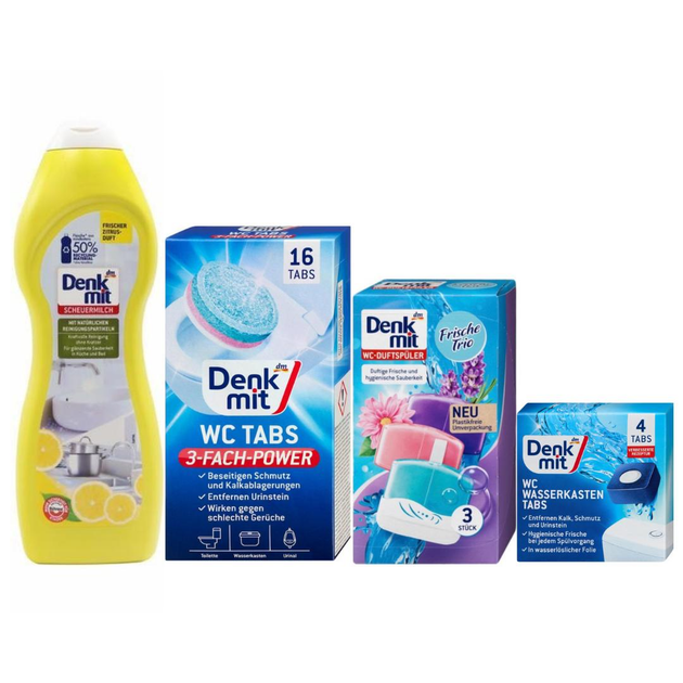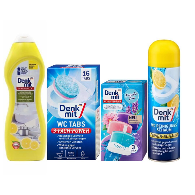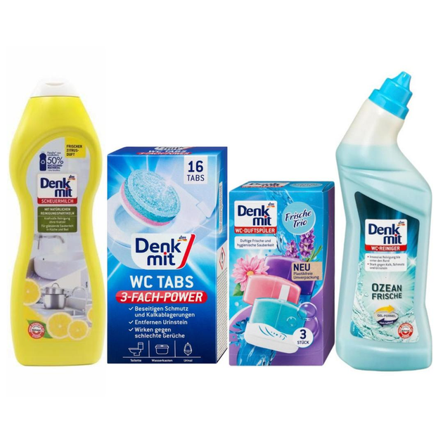 Набір DenkMit для ванної кімнати - крем універсальний + таблетки + блочки + для бачка