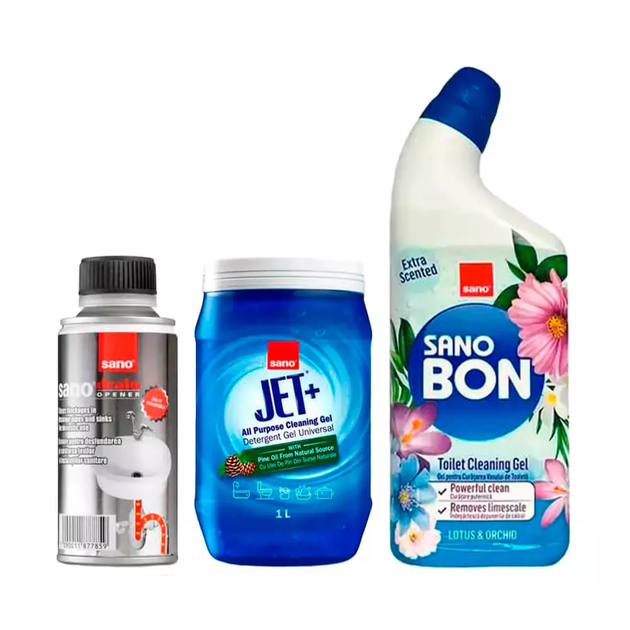 Набір Sano Засіб для видалення цвілі Mildew Remover, Засіб для прочищення каналізаційних труб Drain, Універсальний гель Jet+