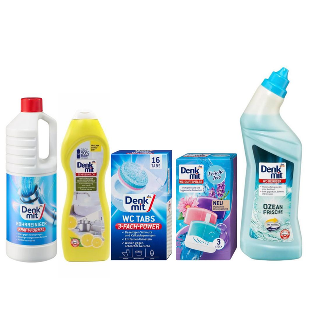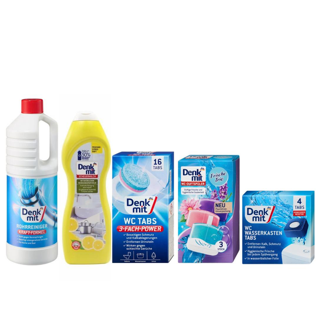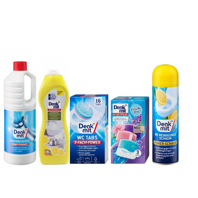 Засоби Denk Mit для унітазу в бачок+таблетки+рідкий+крем+труби
