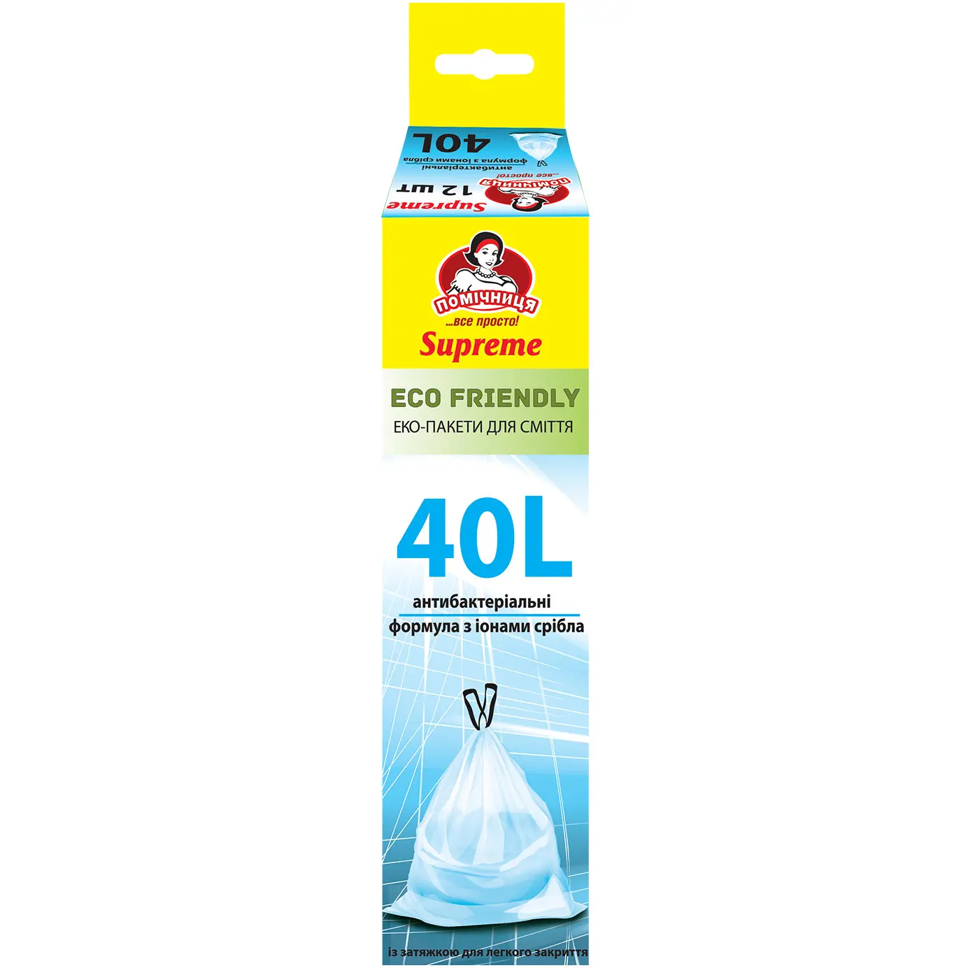 Пакети для сміття Помічниця Supreme Eco Friendly з затяжками антибактеріальні 40 л 12 шт.