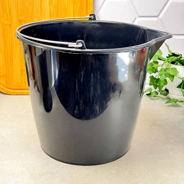 Відро будівельне 13 л Plastiken чорне з носиком і металевою ручкою