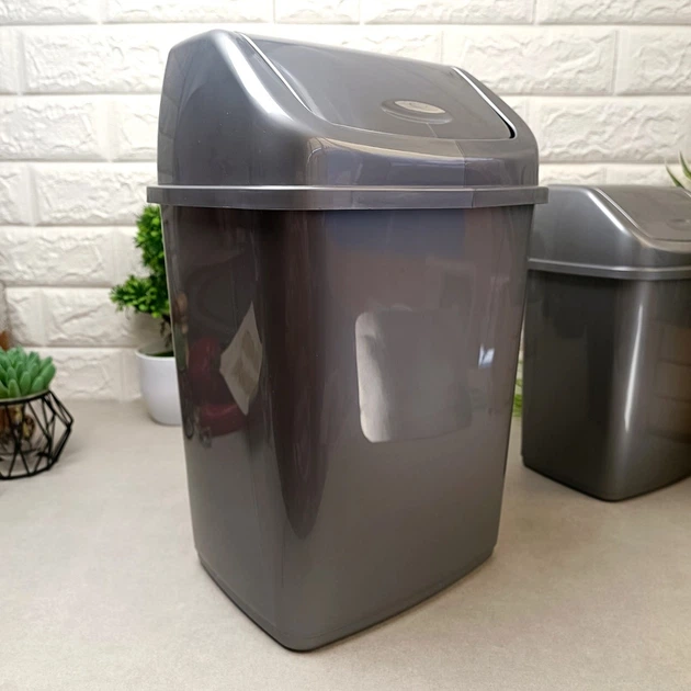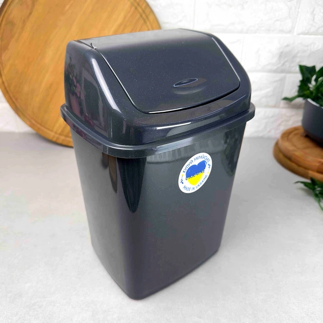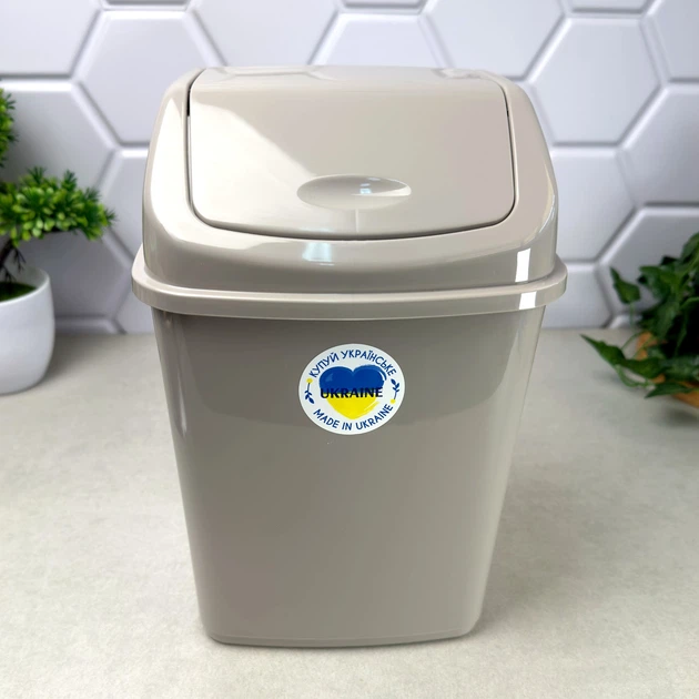 Відро для сміття з поворотною кришкою 10 л сірого кольору Алеана