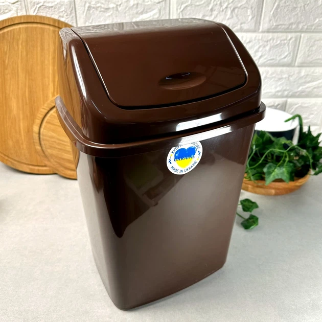 Компактне відро для сміття з поворотною кришкою 10 л Коричневе Алєана
