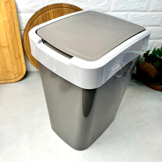 Відро для сміття 10 л з відкидною кришкою Сіре 09712-8 Dunya