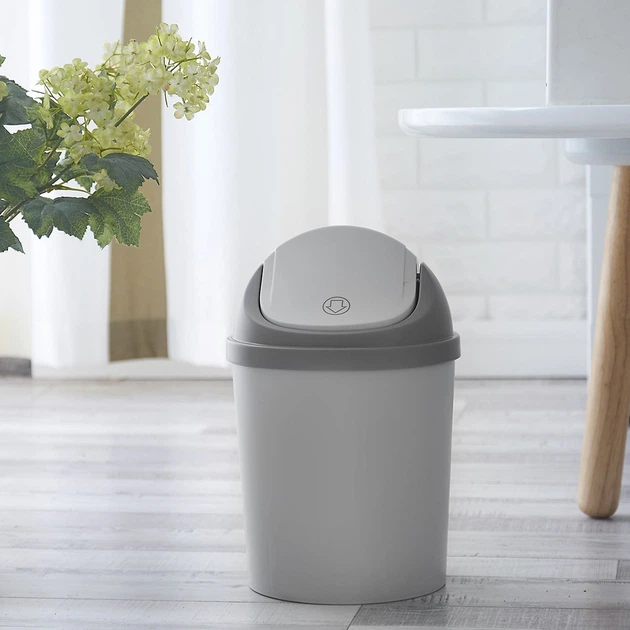 Відро для сміття 5 л кругле із кришкою пластикове сіре MVM BIN-10 5L GRAY