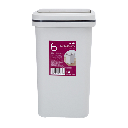 Відро для сміття MVM з кришкою BIN-04 6 л Сіре (BIN-04 6L GRAY)