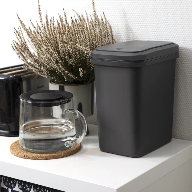Відро для сміття 5 л з кришкою прямокутне пластикове антрацит MVM BIN-11 5L ANTHRACITE