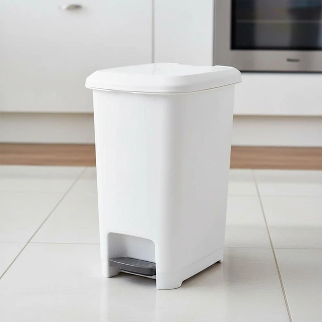 Відро для сміття з педаллю пластиковий з кришкою, 15 л, Білий (033-WHITE)