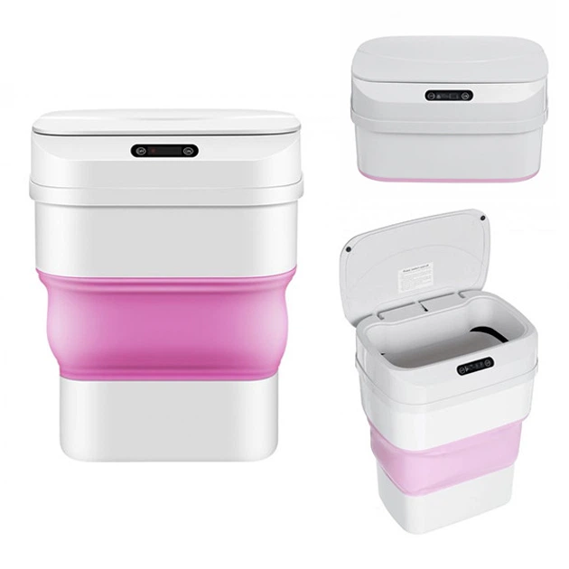 Відро для сміття складане Smart Sensor Folding Trash Рожеве З датчиком