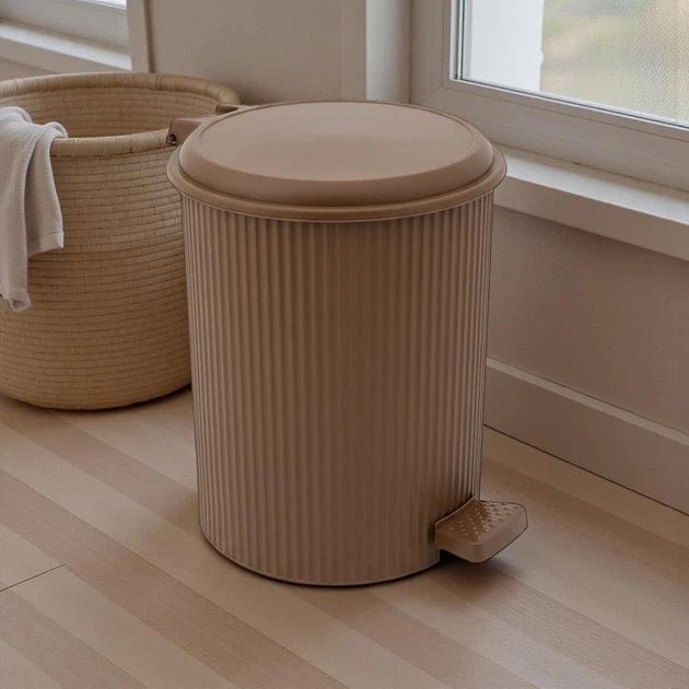 Відро для сміття кругле з педаллю пластикове, з кришкою, 11 л, Коричневий (030-BROWN)
