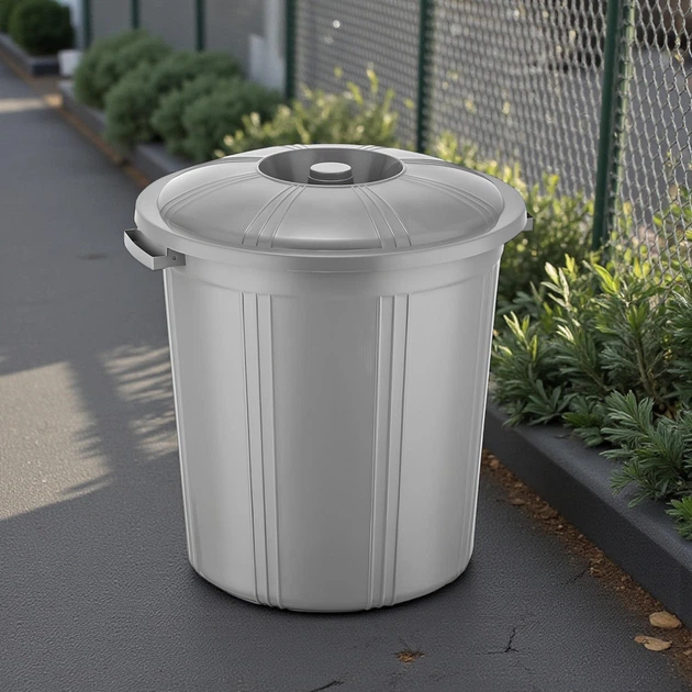 Бак для сміття круглий з кришкою пластиковий 70 л Сірий (027-GRAY)