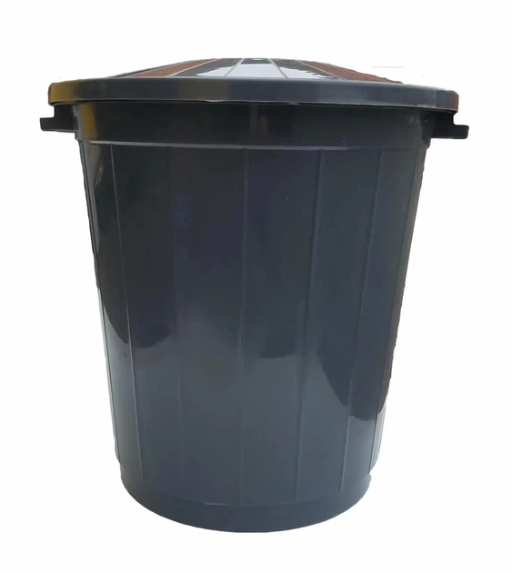 Бак для сміття з кришкою 65 л з харчового поліпропілена темно-сірий Горизонт