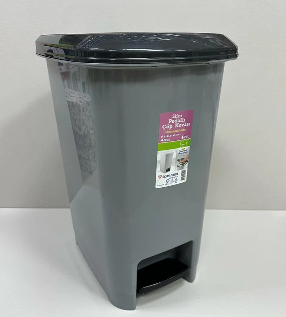 Контейнер для сміття пластиковий 25 л з педалькою Ucsan Plastik M-1054 сірий
