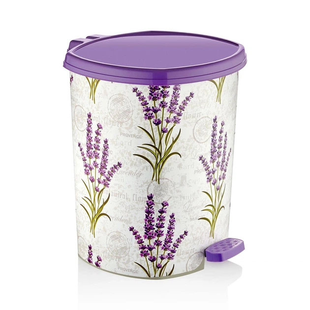 Відро сміттєве Ozer, педальне 20л з малюнком Лаванда із пластику з кришкою та педаллю D-009
