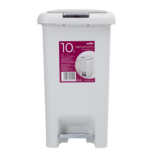 Відро для сміття MVM з кришкою і педаллю BIN-01 10 л Сіре (BIN-01 10L GRAY)
