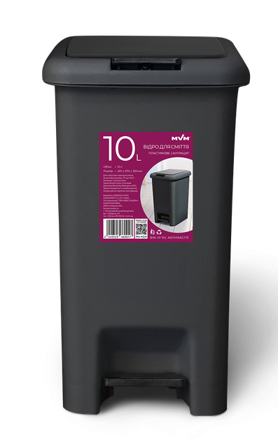 Відро для сміття MVM з кришкою і педаллю BIN-01 10 л Антрацит (BIN-01 10L ANTHRACITE)