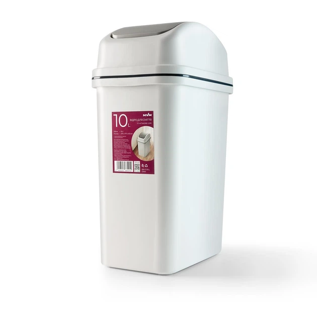 Відро для сміття на 9л кругле MVM з кришкою 390x235x235мм пластик сіре BIN-10 9L GRAY
