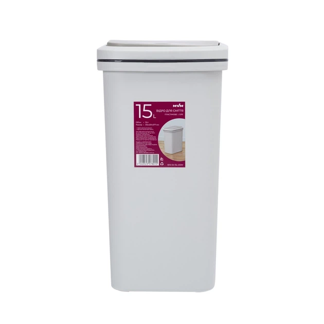 Відро для сміття 15 л з кришкою пластикове MVM BIN-04 15L GRAY