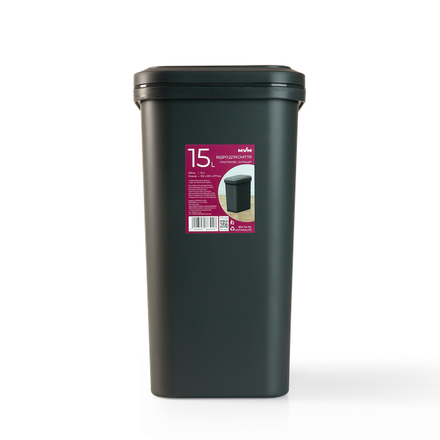 Відро для сміття пластикове з кришкою MVM 15л антрацит