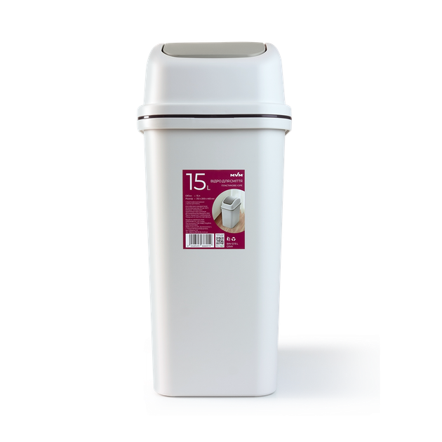Відро для сміття MVM з кришкою BIN-12 15 л Сіре (BIN-12 15L GRAY)