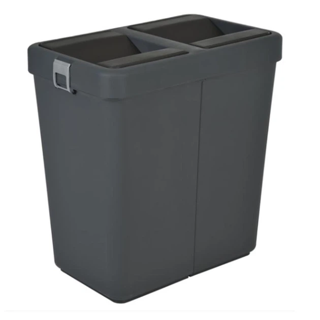 Відро для сміття Motek подвійне 14 л + 14 л пластикове з поворотною кришкою Антрацит