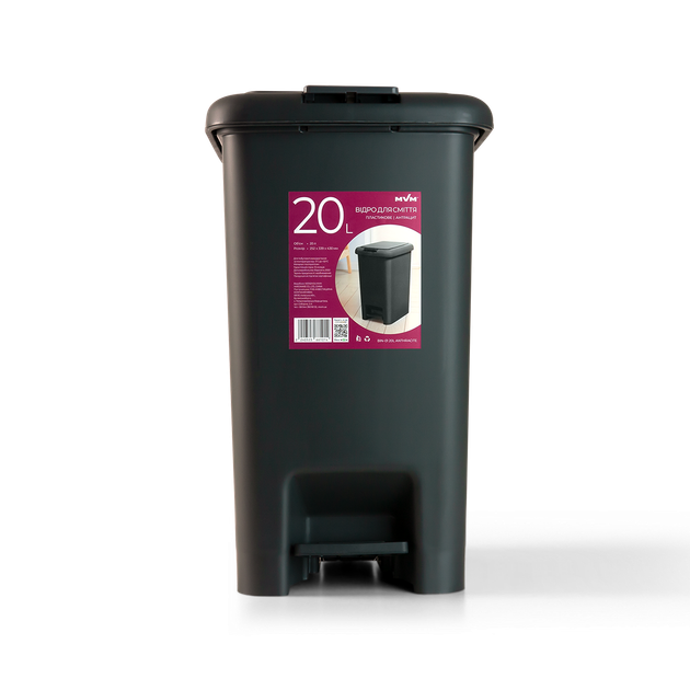 Відро для сміття пластикове з кришкою та педаллю MVM 20л антрацит