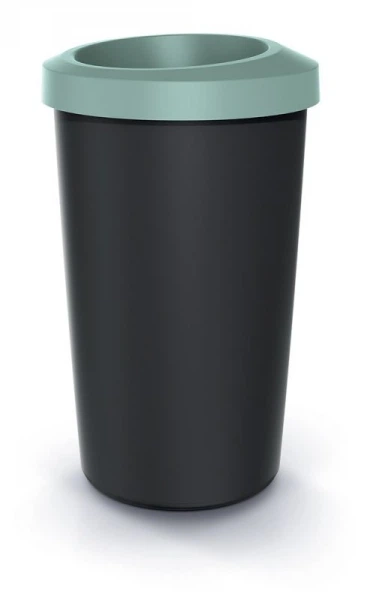 Відро для сміття Compacta R кругле 45л чорне з відкритою кришкою Зелений обідок Prosperplast