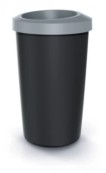 Відро для сміття Compacta R кругле 45л чорне з відкритою кришкою Сірий обідок Prosperplast