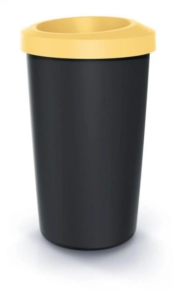 Відро для сміття Compacta R кругле 45л чорне з відкритою кришкою Жовтий обідок Prosperplast