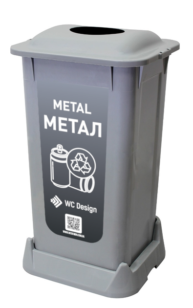 Контейнер для сортування відходів МЕТАЛ, сірий пластиковий 70 л з кришкою SAO-70 101
