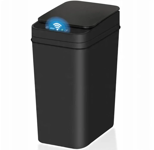 Сенсорне відро для сміття 12л Чорне смарт на батарейки АА з автоматичною кришкою квадратне