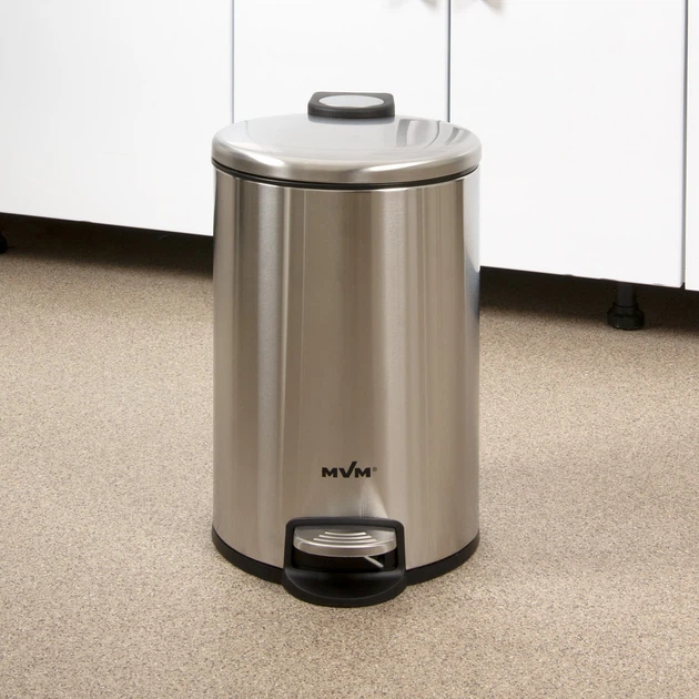 Відро для сміття MVM з кришкою та педаллю BIN-16 12L SS нержавіюча сталь