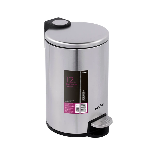 Відро для сміття з кришкою та педаллю BIN-16 12L SS