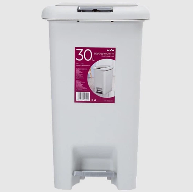 Відро для сміття з кришкою та педаллю MVM BIN-01 30L GRAY