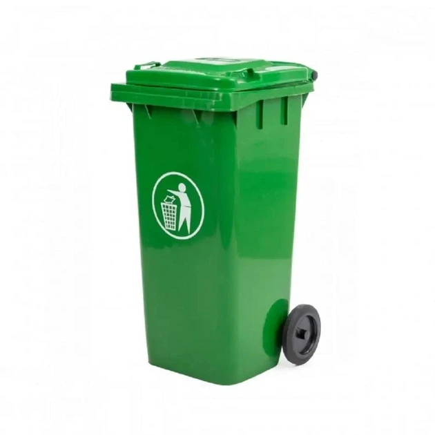 Пластиковий вуличний контейнер для сміття Mirpol 120 л Зелений, Сміттєвий бак на колесах із кришкою