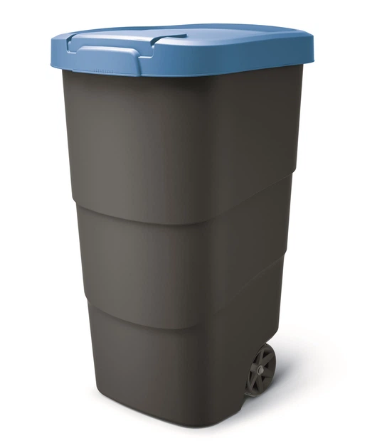 Бак для сміття Prosperplast 110 л антрацит із синьою кришкою контейнер для відходів із колесами (533952)