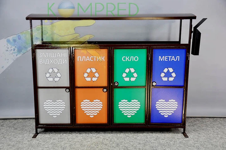 Модульні контейнери для роздільного збору сміття на 4 секції під пакет з внутрішніми баками Kompred OL332/1