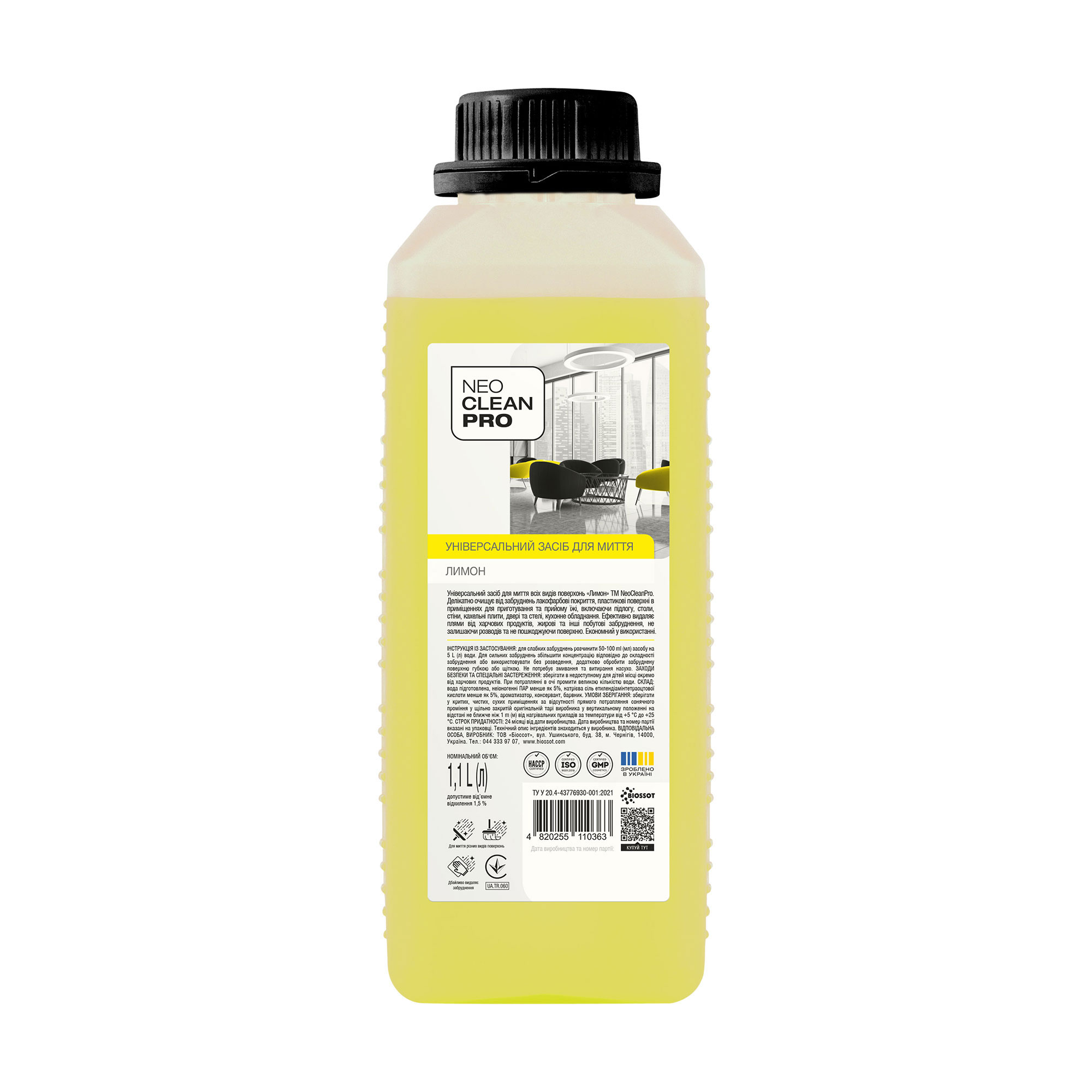 Універсальний засіб для миття всіх видів поверхонь Biossot NeoCleanPro Лимон, 1.1 л