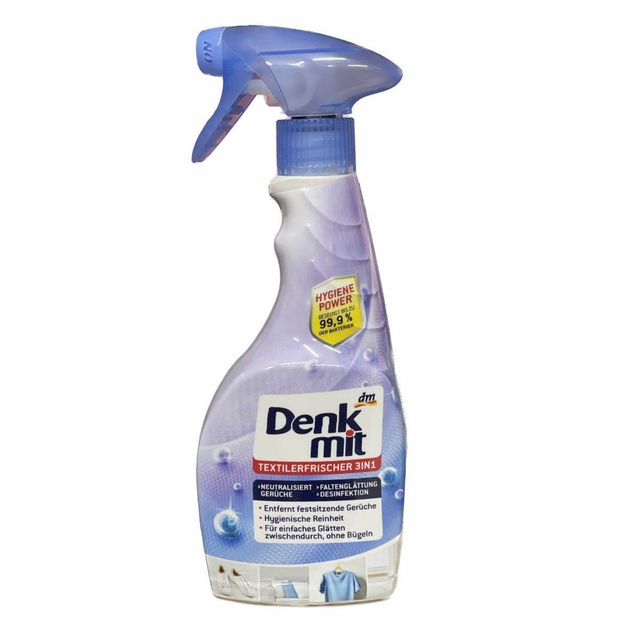 Denkmit Textilerfrischer 3 в 1 спрей-рідка праска для видалення неприємних запахів, розгладження пом'ятостей та складок без