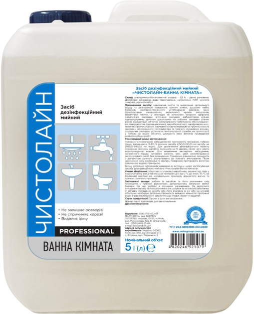 Дезінфікувальний мийний засіб MDM Чистолайн Ванна кімната 5 л (4820246521079)