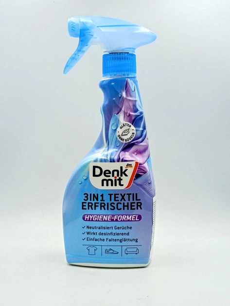 Cпрей для видалення неприємних запахів,розгладження пом'ятостей та складок без прасування 3в1 від Denkmit 0,5л
