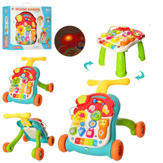 Дитяча каталка-ходунки-штовхач 2в1 HB 0048 Ігровий інтерактивний центр + столик з піаніно