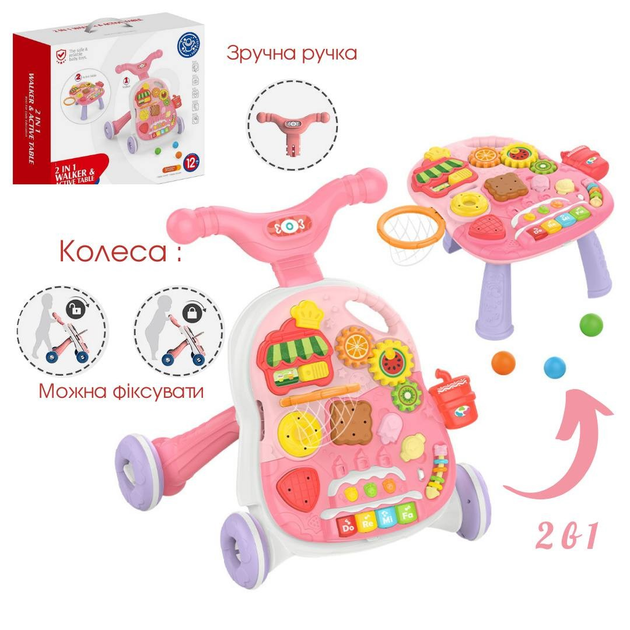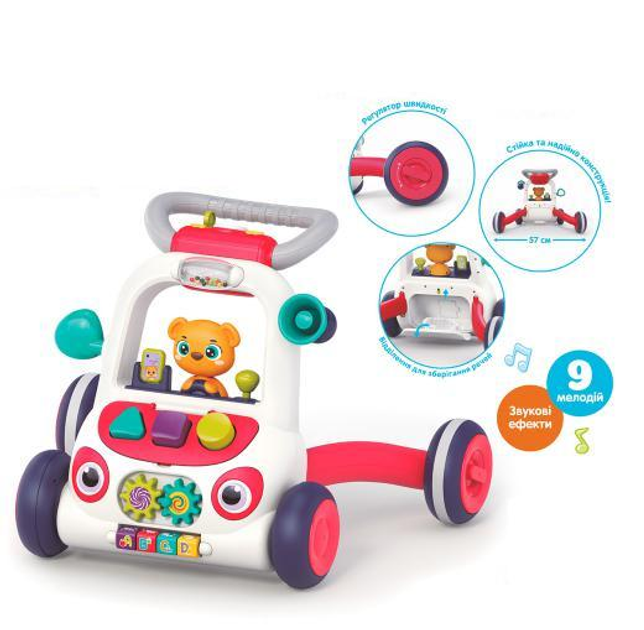 Дитяча каталка ходунки HE0814 толокар трансформер столик з музикою Рожевий